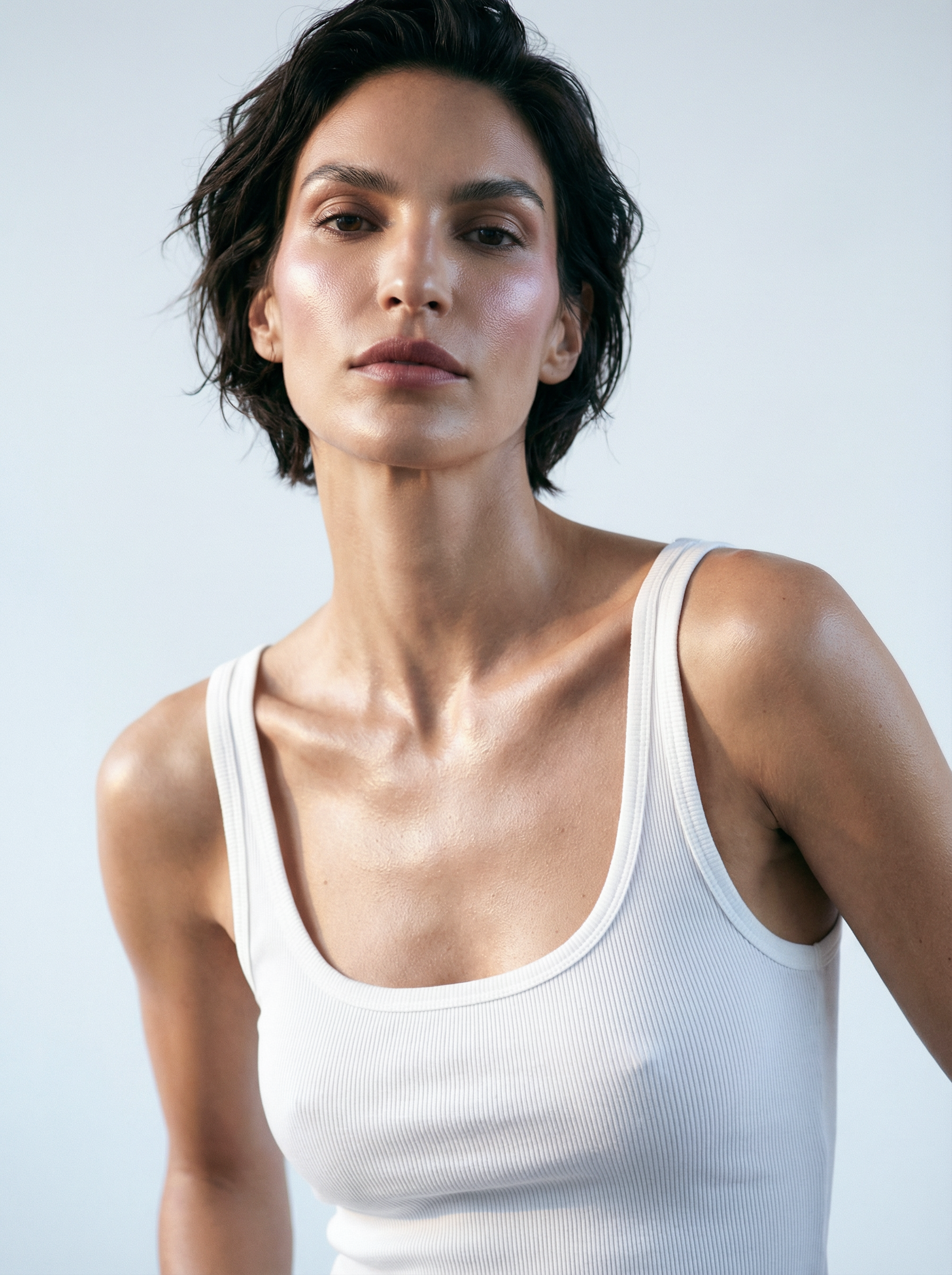 Тон кожи: Тёплый оливково-бежевыйВолосы: Тёмный шатен / почти чёрные, короткие или средней длины. Глаза: Тёмно-карие / тёмно-ореховые, миндалевидные.